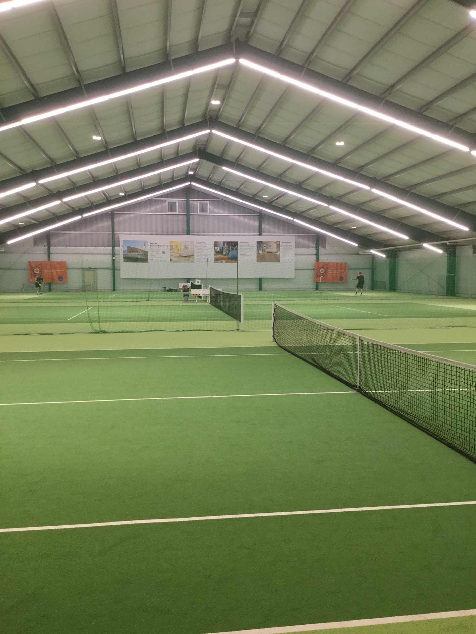 Unsere neue Hallenbeleuchtung mit bis zu 500 LUX wird Sie hellauf begeistern. Sie möchten mit einem Trainer das Tennisspielen erlernen oder Ihr Spiel verbessern? In unserer Halle sind Tennistrainer tätig und können auf Wunsch gebucht werden. Anschließend können Sie Ihr kaltes Bier bei uns geniessen. >>Hallenpreise >>Trainer